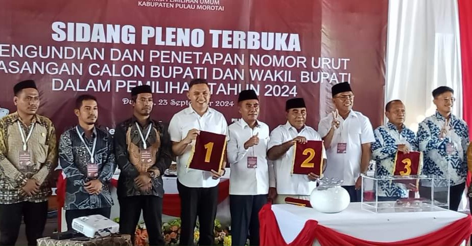 Hasilnya, Paslon Deni Garuda-Qubais Baba (DG-QB) memperoleh nomor urut 01, Palson Samsudin Banyo-Judi Dadana (SB-Jadi) nomor urut 02, dan Paslon Rusli Sibua-Rio.C. Pawane (RR) mendapatkan nomor urut 03.(iki/red)