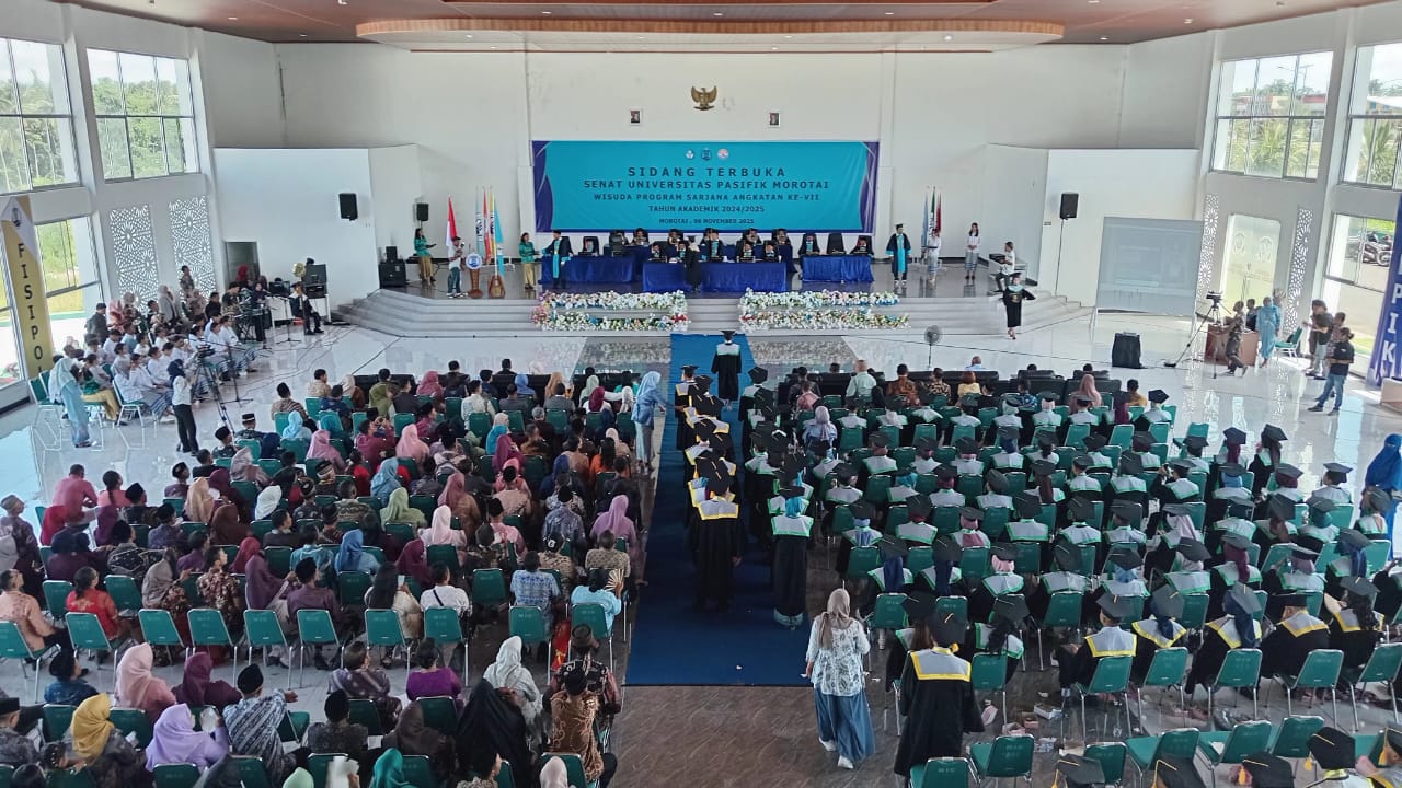 MALUTTIMES – Universitas Pasifik (Unipas) Pulau Morotai, Maluku Utara, resmi mewisudakan 189 mahasiswa dari enam fakultas dan 11 program studi. Prosesi wisuda berlangsung di Gedung Islamic Center Morotai, Kamis (6/10/2025).