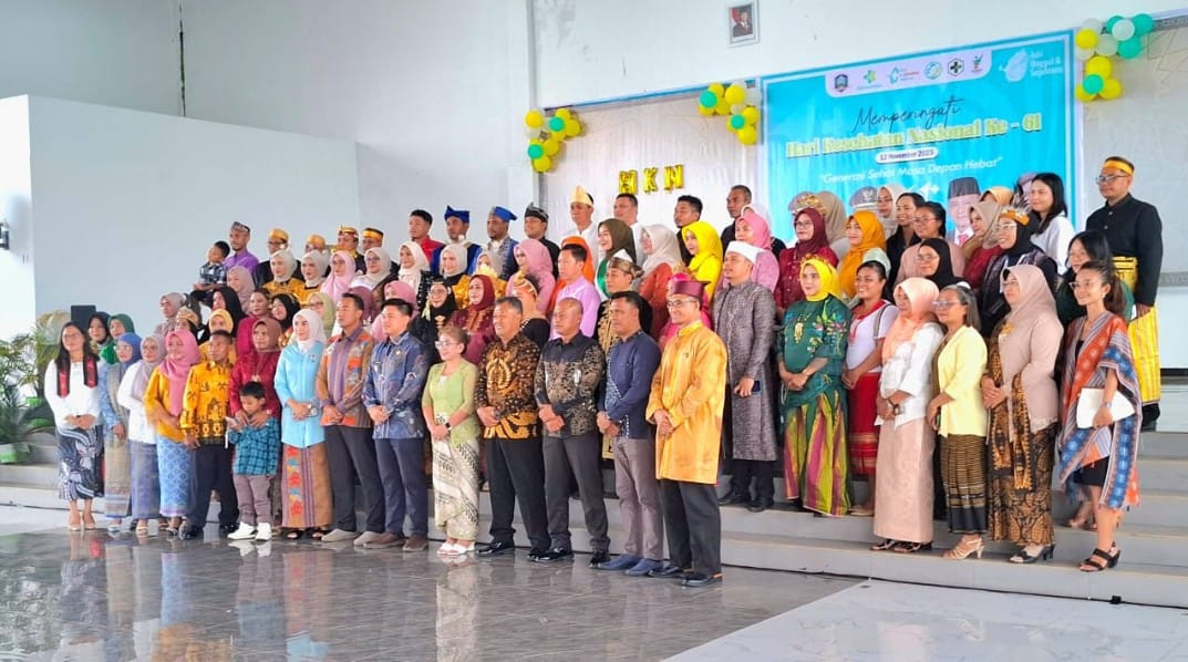 MALUTTIMES – Perayaan Hari Kesehatan Nasional (HKN) ke-61 yang digelar Pemerintah Kabupaten Pulau Morotai, Maluku Utara, berlangsung meriah dan penuh nuansa budaya. Kegiatan yang dipusatkan di Gedung Islamic Center, Rabu (12/11/2025), itu menampilkan keunikan tersendiri karena para peserta kompak mengenakan pakaian adat dari berbagai daerah.