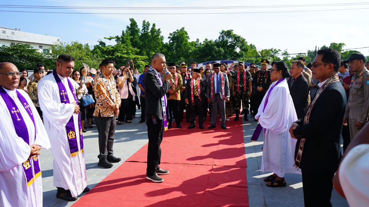 Ketua Panitia Pembangunan sekaligus Peresmian dan Pentahbisan Gedung Gereja, Nyoter Koenoe, menyampaikan bahwa pembangunan gereja merupakan hasil sinergi berbagai pihak, mulai dari jemaat, pemerintah daerah, hingga pelaku usaha. Ia menegaskan kontribusi signifikan NHM dan Haji Robert Nitiyudo Wachjo, baik secara moral maupun material, yang memungkinkan pembangunan gereja ini dapat diselesaikan dan diresmikan.
