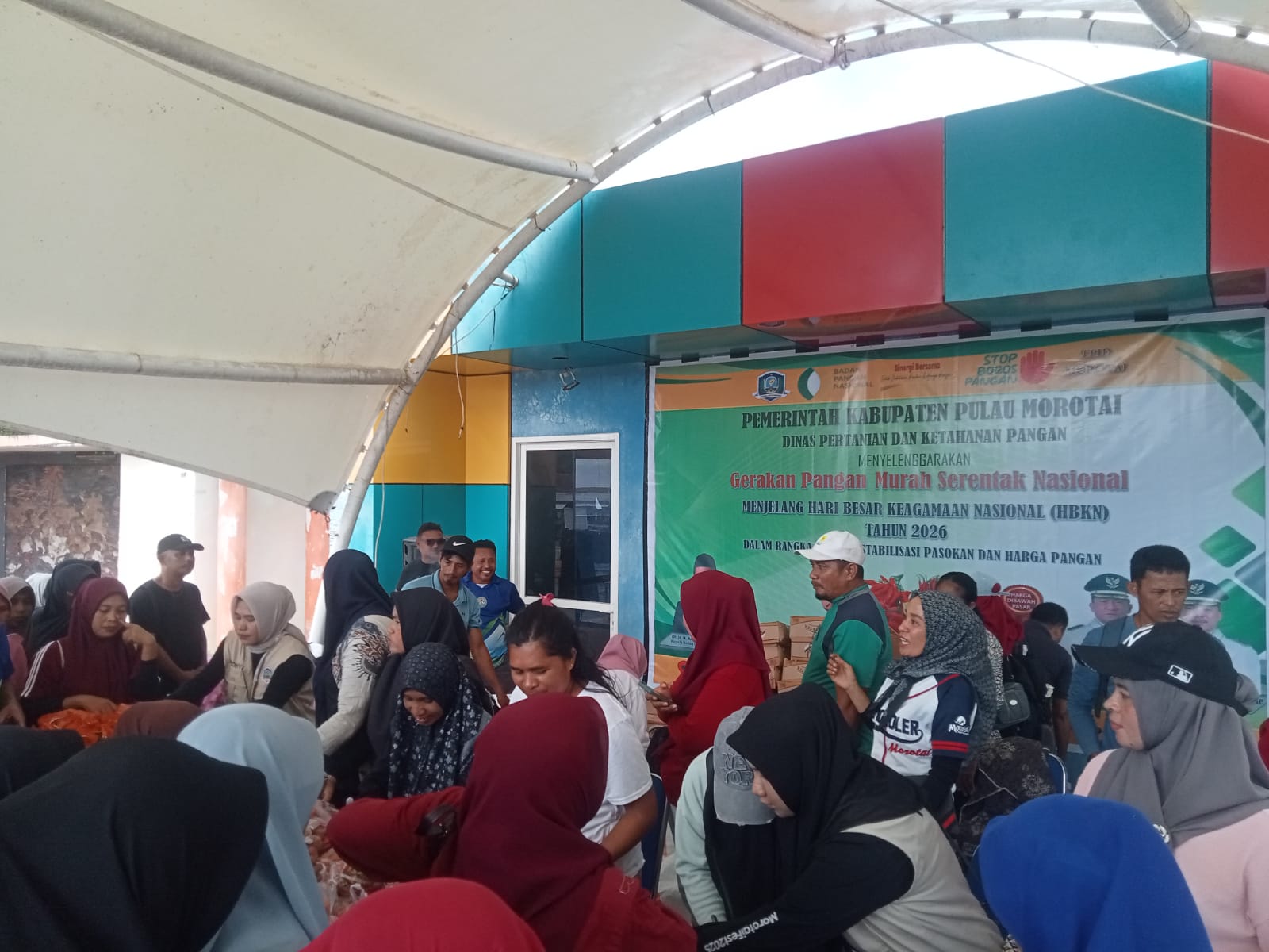 MALUTTIMES – Pemerintah Daerah (Pemda) Kabupaten Pulau Morotai melalui Dinas Pertanian dan Ketahanan Pangan (DPKP) menggelar gerakan pangan murah menjelang bulan suci Ramadan 1447 H/2026 M. Kegiatan ini dipusatkan di Taman Kota Daruba, Pulau Morotai, Maluku Utara, Jumat (13/02/2026).