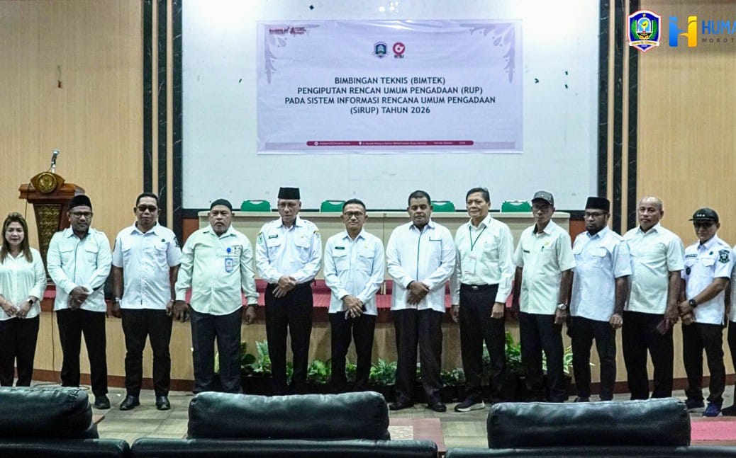 MALUTTIMES – Pemerintah Daerah (Pemda) Kabupaten Pulau Morotai melalui Bagian Pengadaan Barang dan Jasa menggelar pendampingan teknis dalam rangka percepatan penginputan Rencana Umum Pengadaan (RUP) melalui Sistem Informasi Rencana Umum Pengadaan (SIRUP) Tahun Anggaran 2026. Kegiatan tersebut berlangsung di Aula Kantor Bupati Pulau Morotai, Maluku Utara, Rabu (04/03/2026).