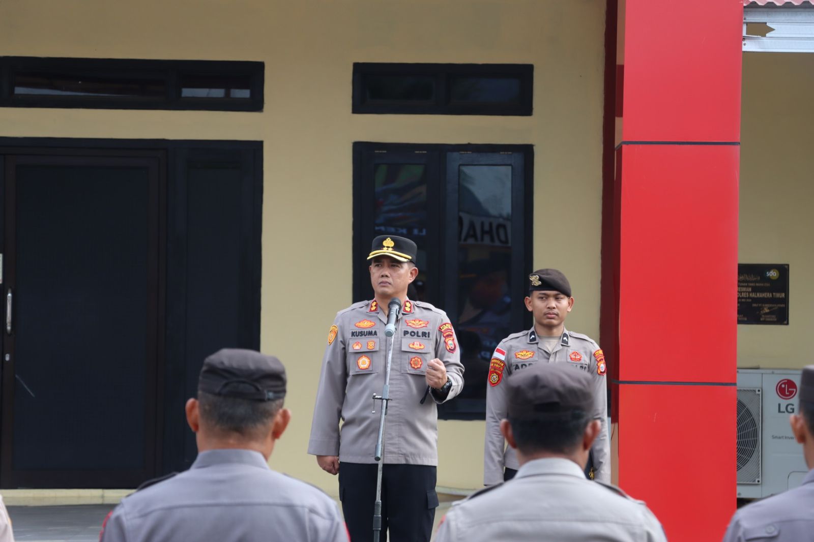 Dalam kegiatan tersebut, Kapolres Halmahera Timur AKBP B. Kusuma Ardiansyah, S.I.K., melakukan pengecekan kehadiran personel guna memastikan kedisiplinan serta kesiapan anggota dalam menjalankan tugas pengamanan.
